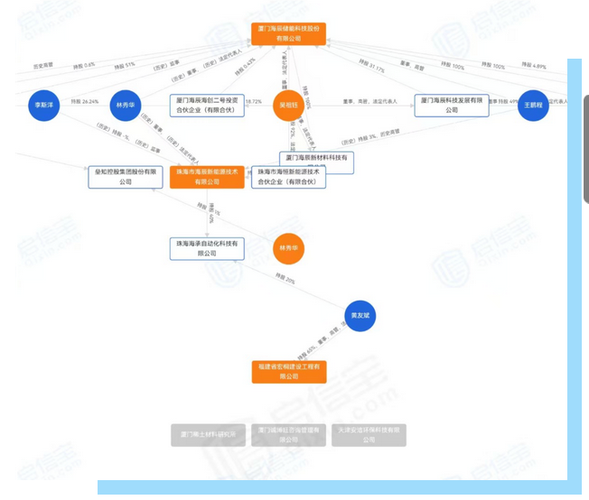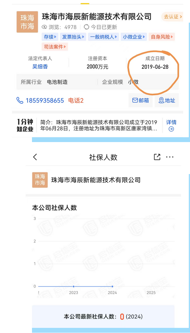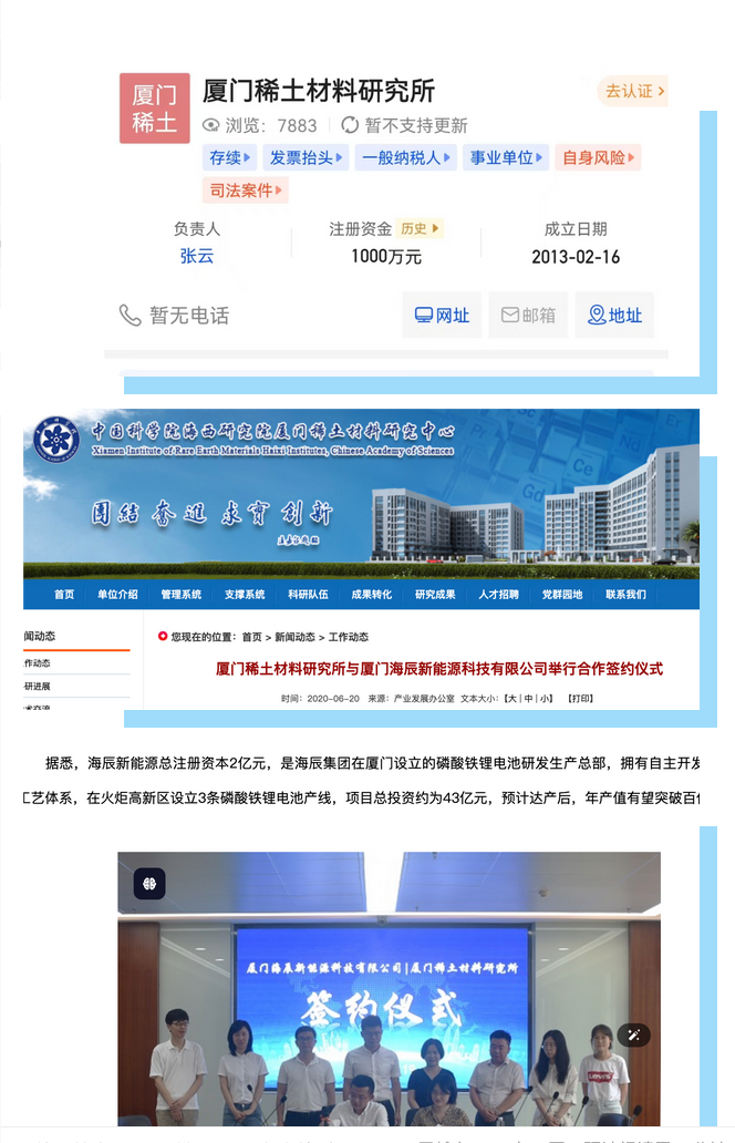 5 、还原宁德时代起诉的 8 被告的逻辑关系也很有意思。除了 2 个个人之外,有 6 个公司主体。工商资料的逻辑关系图中,厦门诚博旺咨询管理有限公司、天津安吉环保科技有限公司和厦门稀土材料研究所并没有股权关系,但厦门稀土材料研究所的官网显示,厦门稀土材料研究所和厦门海辰储能科技建有厦门市先进电化学储能联合实验室,所以稀土所可能被当做储备人才消化技术之地,前述原宁德时代员工张敏和海辰储能员工的诉讼中,公开庭审录像显示,宁德时代拍摄到张敏曾多次佩戴海辰储能工牌进出海辰储能厂区,被认为在厦门稀土材料研究所期间,实际上服务于海辰储能,违反了竞业限制义务,因此被宁德时代要求支付违约金100万元。而其他几个公司,社保人数都为 0或者 1,可能也是用来藏人的。 而他们究竟在案件中担任什么脚色,需要开庭之后才知道。