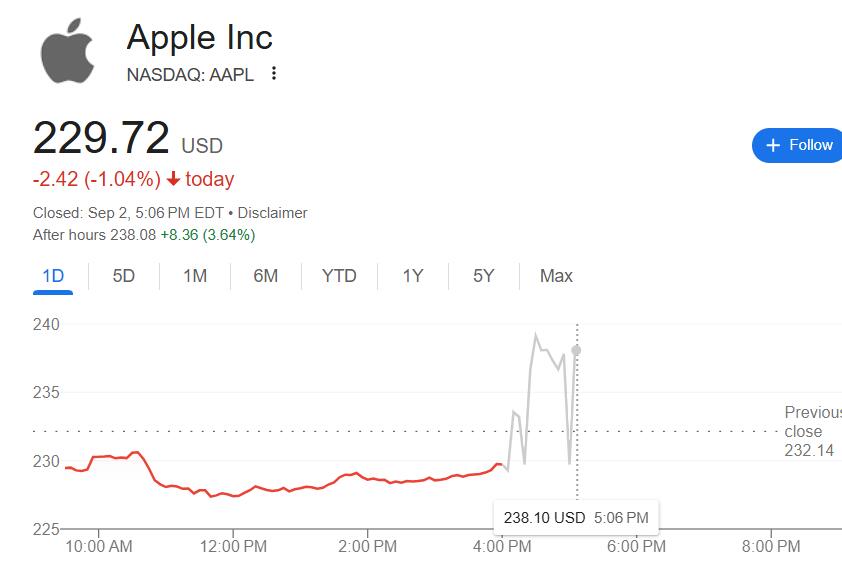 传出AI人员变动的消息后,苹果股价本周二盘中跌幅扩大,一度跌逾2.2%,最终收跌约1%。