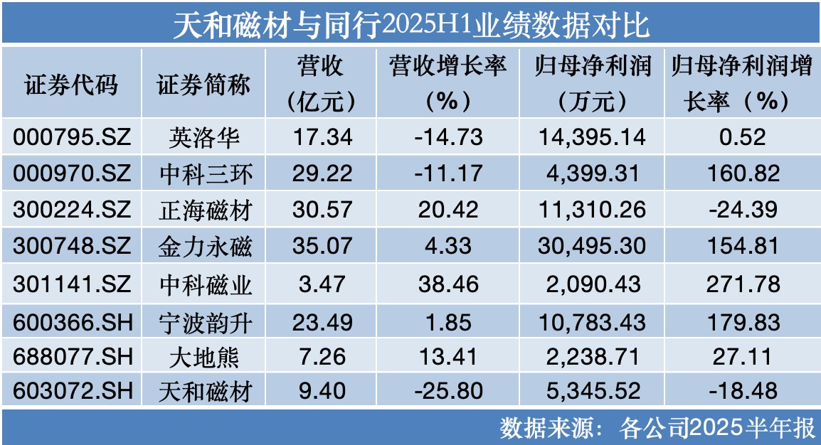 (图片系AI生成) 上市不足一年,次新股天和磁材(603072.SH)又有大动作。 10月20日,天和磁材发布公告称,其全资子公司包头天和新材料科技有限公司(以下简称“包头天和“)近日与包头稀土高新区管委会签署投资协议,拟在当地投资建设“高性能稀土永磁及组件、装备制造与研发项目”,总投资预计8.5亿元。 观察君注意到,业内普遍认为,稀土出口管制新形势下,将提升国产电机产业链全球优势,叠加人形机器人等对高性能永磁材料的新增需求,稀土永磁景气度将提升。在此背景下,天和磁材扩产本为顺应趋势。 但需要注意的是,刚刚上市的天和磁材,业绩明显弱于同行,今年上半年产、销量下滑,产能利用率下降明显;同时,IPO募投的扩产项目尚在建设中,此次再拟大幅扩产,新增产能如何消化有待时间检验。 根据公告,该项目计划分两期建设完成,其中一期项目拟投资2.10亿元,一期项目建成达产后,根据市场情况开展二期项目建设;资金来源为自有资金/自筹资金。 此次签署协议的是一期项目,主要建设内容是高性能稀土永磁及组件、装备制造所需的厂房、配套设施、产线设备和公辅设施等,配套建设研发中心;项目计划供地位于朝阳路以东、机场高速路以南、星辉路以西、春华路以北,地块面积约67亩(具体以招拍挂确定的土地位置和土地面积为准);建设期18个月,从2026年3月起至2027年8月。 公司在公告中表示,项目符合国家相关产业政策及行业发展趋势,有利于公司完善产业布局, 项目建成投产后,有助于扩大公司业务规模,进一步增强公司的整体盈利能力,提高市场竞争能力和抗风险能力,符合公司的长远规划和战略布局。 观察君注意到,该项目实际只是天和磁材拟扩产的其中一个项目,在10月10日的公告中,公司曾披露子公司拟对外投资2个项目,其一即包头天和拟投资的8.5亿元的“高性能稀土永磁及组件、装备制造与研发项目”,预计投资收益率为25%;另一个则为全资子公司包头市天之和磁材设备制造有限公司拟以自有资金及/或自筹资金投资建设“高性能稀土永磁生产设备制造与研发项目”,项目总投资预计不超过5000万元,预计今年10月15日开工,建设期24个月,预计投资收益率30.84%。 值得一提的是,投资协议公告披露同时,公司还发布了一则资金遭冻结的公告,其在中国银行包头市开发区支行的银行账户资金被冻结,合计冻结金额为712.36万元。经公司初步了解,此次银行账户被冻结,是由于申请人山西二建集团有限公司与公司因建设工程施工合同纠纷,向包头稀土高新技术产业开发区人民法院提出财产保全申请。 公司则表示,截至公告披露日,公司业务开展和现金周转情况良好,本次被冻结的募集资金金额只占公司最近一期经审计净资产的0.35%。 数据显示,刚上市的天和磁材资金相对充裕,截至2025年6月30日,公司货币资金6.82亿元,资产负债率35.43%,短期借款2.09亿元,一年内到期非流动负债2.71亿元。 如上所述,天和磁材子公司的2个投资项目均涉及扩产,虽未明确具体的扩产规模,但可类比IPO招股书中的扩产项目。 公开资料显示,天和磁材主营烧结钕铁硼、烧结钐钴等高性能稀土永磁材料研发、生产、销售,于今年1月3日上市。公司IPO共募资8.13亿元,投向高性能钕铁硼产业化项目、高性能稀土永磁材料生产线智能化改造项目及补充流动资金等5个项目。 (天和磁材募投项目,来源:招股书) 这其中,高性能钕铁硼产业化项目拟投资3.24亿元,年产3000吨新能源汽车用高性能钕铁硼产业化项目拟投资27010万元,二者皆为扩产项目。 根据公司高管在10月13日的业绩说明会上的说法,“在产能建设方面,公司募投项目‘高性能钕铁硼产业化项目’产能稳定释放;募投项目‘年产3,000吨新能源汽车用高性能钕铁硼产业化项目’建设顺利,力争2025年年底满足验收条件,届时公司将形成年产12300吨的产能。” 回溯来看,天和磁材的产能一直在增加。2021年-2024年,公司钕铁硼毛坯的产能分别为7000吨、7000吨、8000吨、9300吨,产能利用率分别为104.84%、110.14%、103.67%、111.34%。 钕铁硼成品的生产量则分别为3373.09吨、4440.89吨、4512.82吨、6183.88吨,销售量为3058.76吨、4118.66吨、4540.92吨和6238.98吨,产销率分别为90.68%、92.74%、100.62%、100.89%。 不过,产销量的增长并未持续给公司带来业绩的增长,反而在上游稀土价格下行及行业竞争加剧的背景下,连续录得下滑。2023年、2024年,公司分别实现营收26.51亿元、25.90亿元,同比下降8.09%、2.32%;归母净利润1.69亿元、1.36亿元,同比减少24.25%和19.38%。 到了今年上半年,随着产能的不断释放,公司产、销量增势却戛然而止。中报披露,上半年毛坯产量4178.56吨,同比下降 22.25%;产品销量3155.45吨,同比下降17.27%。虽然公司未明确披露上半年的产能情况,但产能利用率下降是大概率事件。 这也就直接导致公司业绩进一步下滑,2025H1仅录得营收9.40亿元、归母净利润5345.52万元、扣非净利润3542.77万元,同比变动-25.80%、-18.48%和-47.10%。 (天和磁材业绩变动情况) 公司解释,业绩下降主要是因为公司外销占比较高,出口管制政策实施后,公司依法依规积极办理出口许可申请,短期内对境外客户发货放缓,订单交付延后。公告显示,2021-2024年,公司境外收入占比分别为23.03%、36.25%、37.56%和47.93%。 需要注意的是,虽然受出口政策影响,但类比同行,天和磁材上半年的业绩也难言好看——不仅营收是可对比同行中下降最
