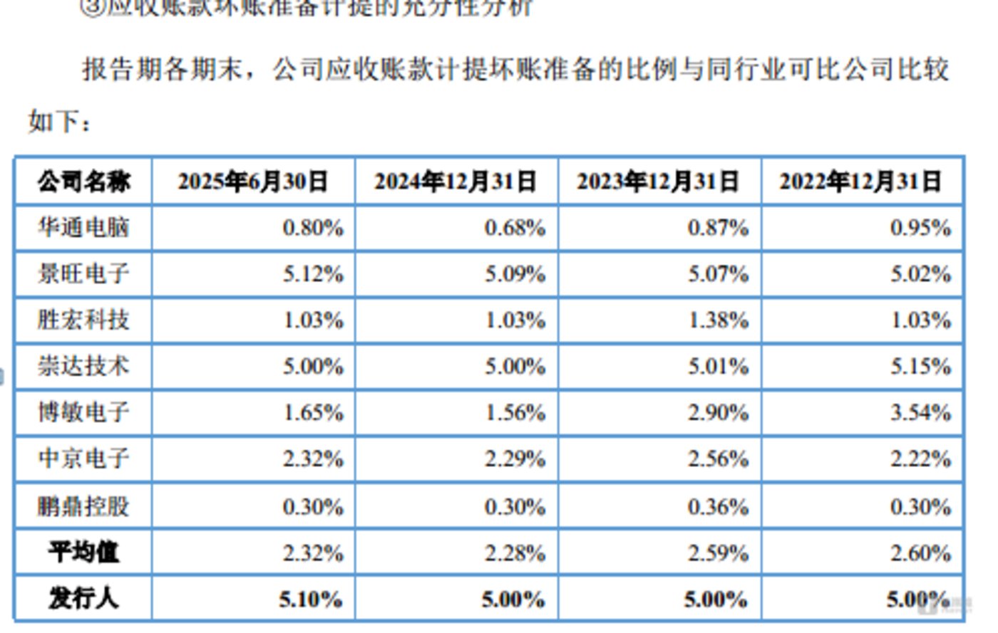 10月31日,江西红板科技股份有限公司(下称“红板科技”)将主板IPO上会,公开发行21791.7862万股。 笔者注意到,红板科技报告期内业绩亮眼,2024年及2025年上半年净利润更是大幅激增,而驱动业绩增长的核心因素是毛利率的显著攀升,尤其是2025年上半年毛利率已反超同行均值。但这一高毛利表现,与公司研发投入不足的现状形成明显反差,报告期内,无论是研发费用金额,还是研发费用率,红板科技均持续低于同行可比公司的平均水平。 应收账款方面,红板科技的应收账款规模也在持续扩大,从6.22亿元增至11.36亿元,2022-2024年年均复合增速达21.55%,这一增速显著高于同期10.72%的营收增速。而在应收账款管理上,公司的表述与实际计提政策存在明显矛盾:一方面,公司称1年以内应收账款占比极高,且历史数据显示这类账款次年基本能完成兑付,回收情况良好,意味着应收账款实际风险较低;另一方面,公司始终按5%-5.1%的比例计提坏账准备,这一比例远超同行2.28%-2.6%的平均水平。在回收风险已被证明较低的背景下,仍采用远高于行业常规的计提比例,其坏账计提政策的合理性,目前缺乏明确且有说服力的解释。 更值得关注的是,公司债务压力与分红行为的矛盾,公司的流动比率、速动比率始终均弱于同行,并且货币资金始终无法覆盖短期借款,资金链承压明显。但就在这样的资金状况下,公司2021-2024年合计现金分红达7.38亿元,由于控股股东香港红板持有公司95.12%的股权,这笔分红几乎全部流入其口袋。 红板科技专注于印制电路板的研发、生产和销售,产品定位于中高端应用市场,具有高精度、高密度和高可靠性等特点,是行业内HDI板收入占比较高、能够批量生产任意互连HDI板和IC载板的企业之一。 2022年-2024年和2025年1-6月(下称“报告期”),红板科技分别实现营业收入220458.94万元、233953.41万元、270247.82万元、171001.81万元,净利润分别为14065.91万元、10492.6万元、21391.41万元、23985.21万元,其中2024年净利润同比增103.87%,2025年上半年净利润直接超过2024年全年。 对此,红板科技向笔者表示,报告期内,发行人的净利润主要由营业利润所贡献,营业利润主要受营业收入及毛利率的影响。 笔者注意到,这一期间公司毛利率的变化确实关键。报告期内,红板科技的毛利率分别为13.28%、11.04%、13.98%、21.36%,同行可比公司平均值分别为16.98%、15.35%、15.26%、17.95%,可见,红板科技的毛利率在始终低于同行均值的情况下,到了2025年上半年一举反超了同行均值。 对此,红板科技向笔者表示,2025年1-6月,公司主营业务毛利增长,主要系:一方面随着公司vivo、传音、荣耀等终端手机品牌客户销售收入持续增长以及报告期内新增客户比亚迪、龙旗科技的销售收入快速增长,带动公司HDI板销售收入快速增长,另一方面由于公司客户订单结构的不断优化,产品工艺技术难度提升,公司HDI板销售价格较上年增长19.85%,带动HDI板毛利率提升,以上使得公司HDI板毛利增长;随着公司与客户合作关系不断加深,刚柔结合板订单量增长,带动公司刚柔结合板销售收入快速增长,毛利随之增长。 值得玩味的是,报告期内,红板科技的研发费用分别为10061.96万元、10791.88万元、12519.81万元、6243.8万元,同行可比公司平均值分别为49832.88万元、53220.85万元、62000.87万元、32539.05万元;同时,红板科技的研发费用率分别为4.56%、4.69%、4.63%、3.65%,同行可比公司平均值分别为4.7%、5.14%、5.13%、4.89%。无论是研发金额还是研发费用率,红板科技均低于同行均值,而在这种背景之下,公司的毛利率却还能反超同行均值,实属令人费解。 红板科技业绩亮眼的同时,应收账款余额也持续高增。截至2022年末、2023年末、2024年末、2025年6月末,红板科技应收账款余额分别为62191.05万元、75842.49万元、91877.3万元、113624.58万元,规模持续扩大,2022-2024年的年均复合增长率达21.55%,显著高于同期10.72%的营收增速。 从应收账款账龄上看,红板科技应收账款的账龄具体情况如下: 根据该表格,可以明显的发现,公司应收账款几乎全部为1年以内,且历史数据显示,这些1年以内的应收账款几乎都会在次年完成兑付,极少出现拖欠情况,说明其应收账款回收情况良好。 但矛盾的是,红板科技应收账款计提坏账准备的比例始终较高,报告期内分别为5%、5%、5%、5.1%,而同行可比公司平均值仅为2.6%、2.59%、2.28%、2.32%,公司计提比例远超同行。较高的计提比例直接导致报告期内坏账准备金额逐年增加,分别为3110.52万元、3792.12万元、4594.51万元、5789.68万元。 综合上述情形,不难发现,红板科技应收账款的兑付几乎全部都在下一年就完成,为何还要计提如此多的坏账准备比例? 对此,红板科技向笔者表示,公司应收账款按组合计提坏账准备分类和计提比例的依据充分、合理,公司应收账款坏账准备计提政策与同行业可比上市公司不存在重大差异,符合行业惯例。 笔者注意到,红板科技报告期内债务压力较大,多项关键财务指标表现弱于同行。报告期内,红板科技的流动比率分别为0.93、0.84、0.89、0.96,同行可比公司平均值分别为1.41、1.57、1.47、1.42;速动比率分别为0.79、0.7、0.74、0.79,同行可比公司平均值分别为1.13、1.3、1.2、1.13,无论是流动比率还是速动比率,公司均始终低于同行均值,特别是流动比率,公司始终未超过1,这也意味着,公司的流动资产为何始终低于流动负债,短期偿债压力显著。 与此同时,在上述时间段
