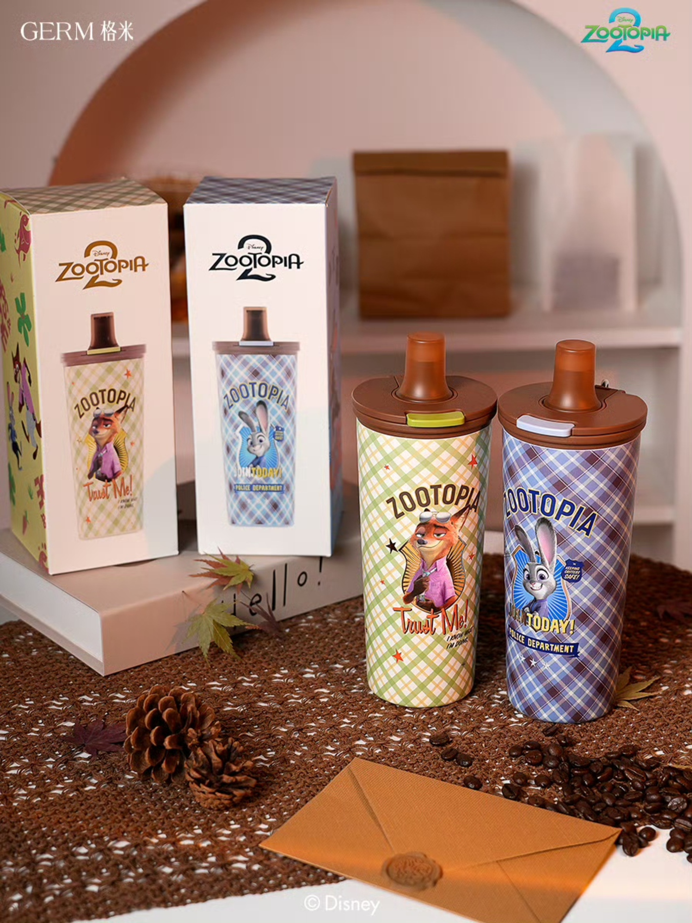 这一思路也完整复用到此次联名中。“IP联名不是简单的logo嫁接,而是要让IP元素融入消费者的日常生活场景中。”他告诉《天下网商》,该系列从6月份开始筹备,9月份正式投产。在产品设计阶段,GERM 针对不同人群做了明确场景细分:成人款保温杯以复古格纹搭配朱迪、尼克形象,不锈钢材质与长时间的保温性能适配通勤、出游场景;儿童款吸管杯则通过萌系角色图案、安全锁扣与可拆卸配件,兼顾童趣与家长对安全性、便捷性的需求。