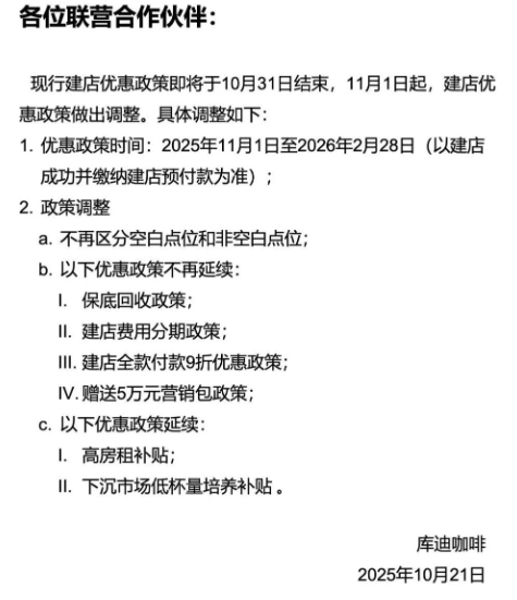 早在去年下半年,库迪就已经悄咪咪把一些联营商的补贴下架缩水了。基本也就是变相宣布,暂停盲目扩张。