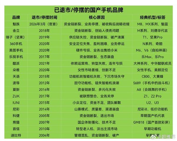 多位知情人士表示,魅族手机业务已经实质性停摆,将于2026年3月正式退市。
