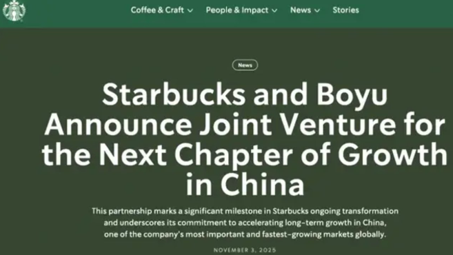 2025-11-05发酵将近一年的星巴克中国出售事件,终于迎来大结局。就在今天,星巴克宣布与博裕投资达成战略合作,双方将成立合资企业,共同运营星巴克在中国市场的零售业务。根据协议,博裕将持有合资企业至多60%股权,星巴克保留40%股权,并将继续作为星巴克品牌与知识产权的所有者和授权方,向新成立的合资企业进行授权。而今天的焦点