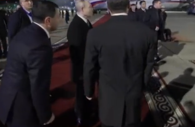 普京抵达吉尔吉斯斯坦访问 迎接仪式现金雕猎犬