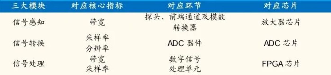 数字示波器性能和相关芯片的对应情况,来源:《示波器最新技术进展及发展趋势》,国金证券研究所