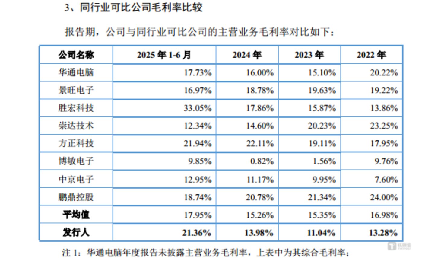 10月31日,江西红板科技股份有限公司(下称“红板科技”)将主板IPO上会,公开发行21791.7862万股。 笔者注意到,红板科技报告期内业绩亮眼,2024年及2025年上半年净利润更是大幅激增,而驱动业绩增长的核心因素是毛利率的显著攀升,尤其是2025年上半年毛利率已反超同行均值。但这一高毛利表现,与公司研发投入不足的现状形成明显反差,报告期内,无论是研发费用金额,还是研发费用率,红板科技均持续低于同行可比公司的平均水平。 应收账款方面,红板科技的应收账款规模也在持续扩大,从6.22亿元增至11.36亿元,2022-2024年年均复合增速达21.55%,这一增速显著高于同期10.72%的营收增速。而在应收账款管理上,公司的表述与实际计提政策存在明显矛盾:一方面,公司称1年以内应收账款占比极高,且历史数据显示这类账款次年基本能完成兑付,回收情况良好,意味着应收账款实际风险较低;另一方面,公司始终按5%-5.1%的比例计提坏账准备,这一比例远超同行2.28%-2.6%的平均水平。在回收风险已被证明较低的背景下,仍采用远高于行业常规的计提比例,其坏账计提政策的合理性,目前缺乏明确且有说服力的解释。 更值得关注的是,公司债务压力与分红行为的矛盾,公司的流动比率、速动比率始终均弱于同行,并且货币资金始终无法覆盖短期借款,资金链承压明显。但就在这样的资金状况下,公司2021-2024年合计现金分红达7.38亿元,由于控股股东香港红板持有公司95.12%的股权,这笔分红几乎全部流入其口袋。 红板科技专注于印制电路板的研发、生产和销售,产品定位于中高端应用市场,具有高精度、高密度和高可靠性等特点,是行业内HDI板收入占比较高、能够批量生产任意互连HDI板和IC载板的企业之一。 2022年-2024年和2025年1-6月(下称“报告期”),红板科技分别实现营业收入220458.94万元、233953.41万元、270247.82万元、171001.81万元,净利润分别为14065.91万元、10492.6万元、21391.41万元、23985.21万元,其中2024年净利润同比增103.87%,2025年上半年净利润直接超过2024年全年。 对此,红板科技向笔者表示,报告期内,发行人的净利润主要由营业利润所贡献,营业利润主要受营业收入及毛利率的影响。 笔者注意到,这一期间公司毛利率的变化确实关键。报告期内,红板科技的毛利率分别为13.28%、11.04%、13.98%、21.36%,同行可比公司平均值分别为16.98%、15.35%、15.26%、17.95%,可见,红板科技的毛利率在始终低于同行均值的情况下,到了2025年上半年一举反超了同行均值。 对此,红板科技向笔者表示,2025年1-6月,公司主营业务毛利增长,主要系:一方面随着公司vivo、传音、荣耀等终端手机品牌客户销售收入持续增长以及报告期内新增客户比亚迪、龙旗科技的销售收入快速增长,带动公司HDI板销售收入快速增长,另一方面由于公司客户订单结构的不断优化,产品工艺技术难度提升,公司HDI板销售价格较上年增长19.85%,带动HDI板毛利率提升,以上使得公司HDI板毛利增长;随着公司与客户合作关系不断加深,刚柔结合板订单量增长,带动公司刚柔结合板销售收入快速增长,毛利随之增长。 值得玩味的是,报告期内,红板科技的研发费用分别为10061.96万元、10791.88万元、12519.81万元、6243.8万元,同行可比公司平均值分别为49832.88万元、53220.85万元、62000.87万元、32539.05万元;同时,红板科技的研发费用率分别为4.56%、4.69%、4.63%、3.65%,同行可比公司平均值分别为4.7%、5.14%、5.13%、4.89%。无论是研发金额还是研发费用率,红板科技均低于同行均值,而在这种背景之下,公司的毛利率却还能反超同行均值,实属令人费解。 红板科技业绩亮眼的同时,应收账款余额也持续高增。截至2022年末、2023年末、2024年末、2025年6月末,红板科技应收账款余额分别为62191.05万元、75842.49万元、91877.3万元、113624.58万元,规模持续扩大,2022-2024年的年均复合增长率达21.55%,显著高于同期10.72%的营收增速。 从应收账款账龄上看,红板科技应收账款的账龄具体情况如下: 根据该表格,可以明显的发现,公司应收账款几乎全部为1年以内,且历史数据显示,这些1年以内的应收账款几乎都会在次年完成兑付,极少出现拖欠情况,说明其应收账款回收情况良好。 但矛盾的是,红板科技应收账款计提坏账准备的比例始终较高,报告期内分别为5%、5%、5%、5.1%,而同行可比公司平均值仅为2.6%、2.59%、2.28%、2.32%,公司计提比例远超同行。较高的计提比例直接导致报告期内坏账准备金额逐年增加,分别为3110.52万元、3792.12万元、4594.51万元、5789.68万元。 综合上述情形,不难发现,红板科技应收账款的兑付几乎全部都在下一年就完成,为何还要计提如此多的坏账准备比例? 对此,红板科技向笔者表示,公司应收账款按组合计提坏账准备分类和计提比例的依据充分、合理,公司应收账款坏账准备计提政策与同行业可比上市公司不存在重大差异,符合行业惯例。 笔者注意到,红板科技报告期内债务压力较大,多项关键财务指标表现弱于同行。报告期内,红板科技的流动比率分别为0.93、0.84、0.89、0.96,同行可比公司平均值分别为1.41、1.57、1.47、1.42;速动比率分别为0.79、0.7、0.74、0.79,同行可比公司平均值分别为1.13、1.3、1.2、1.13,无论是流动比率还是速动比率,公司均始终低于同行均值,特别是流动比率,公司始终未超过1,这也意味着,公司的流动资产为何始终低于流动负债,短期偿债压力显著。 与此同时,在上述时间段