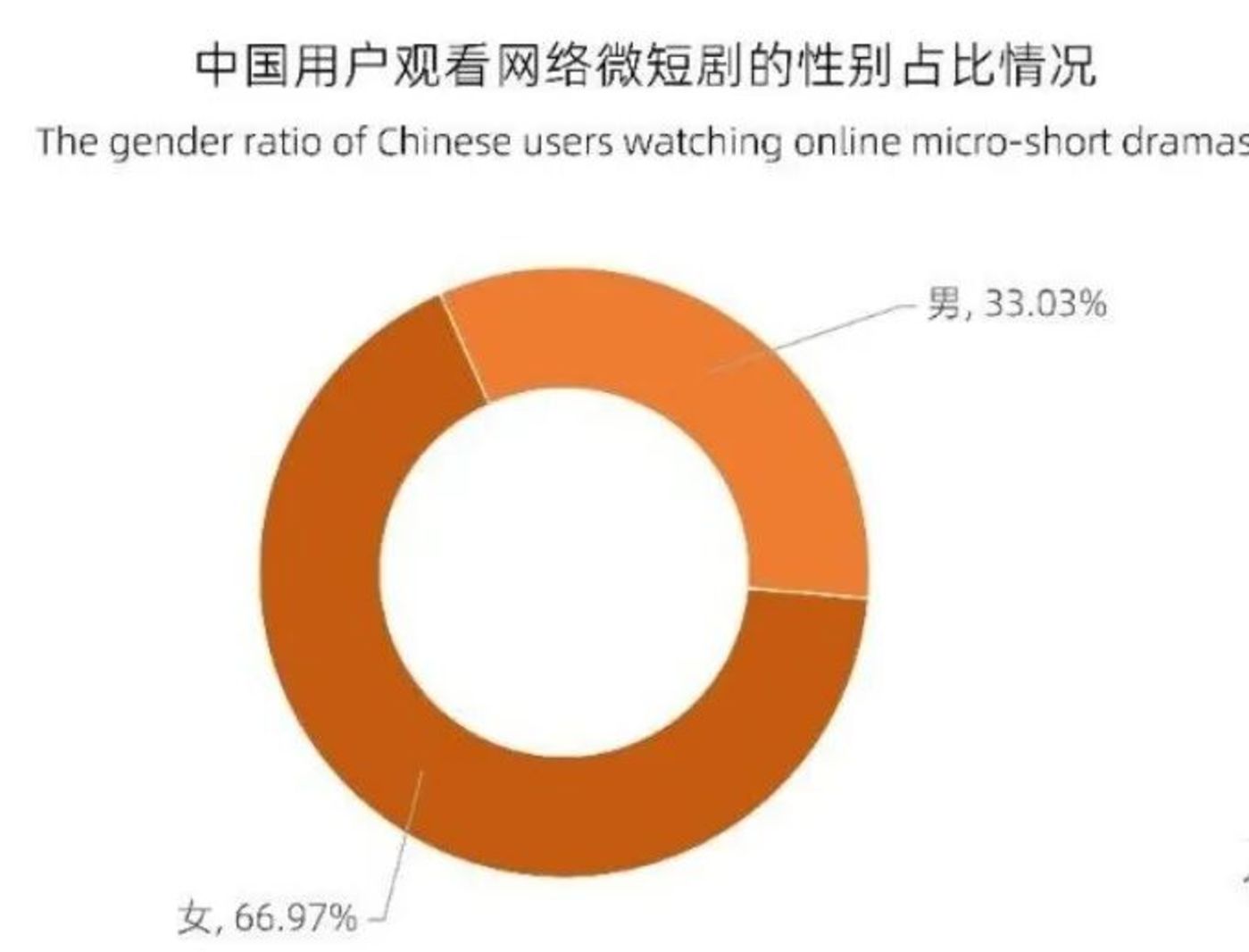 根据艾媒咨询发布的《2025-2029年中国微短剧市场研究报告》显示,目前观看网络微短剧的中国用户中女性占比达到66.97%,而2023年-2024年间女性观众占比还不到六成,女性用户的持续增长与活跃挤压了男频短剧的生存空间。