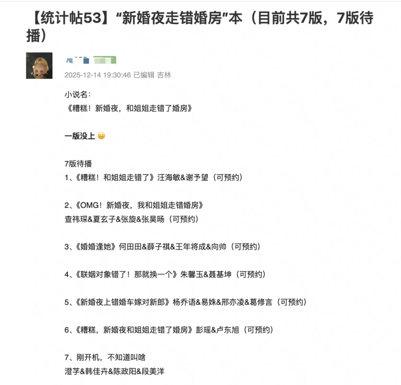 网友统计一本小说拍过7个待播版本