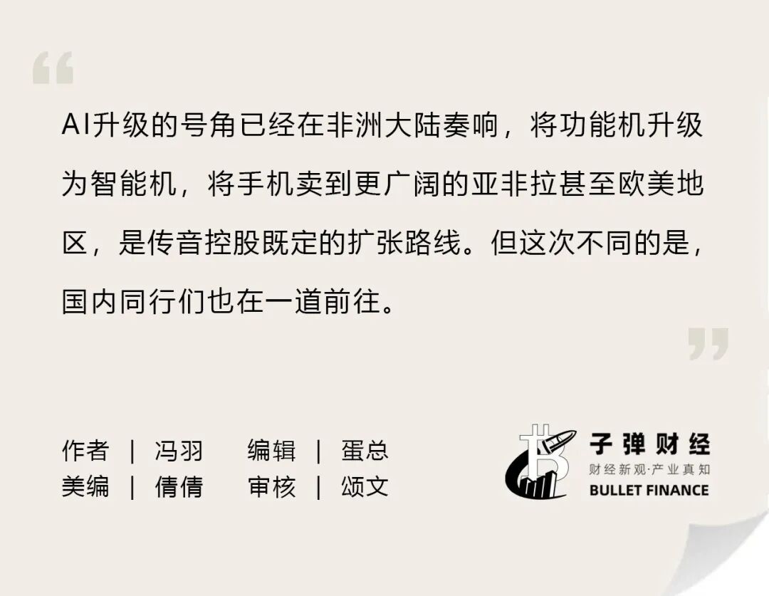 AI升级的号角已经在非洲大陆奏响,将功能机升级为智能机,将手机卖到更广阔的亚非拉甚至欧美地区,是传音控股既定的扩张路线。但这次不同的是,国内同行们也在一道前往。
