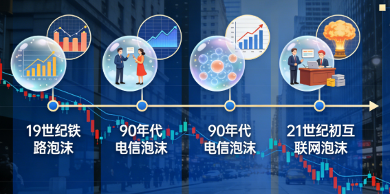 19世纪铁路泡沫、90年代电信泡沫、21世纪初互联网泡沫…无一不是因过度狂热投资而破裂,导致万亿资本蒸发。