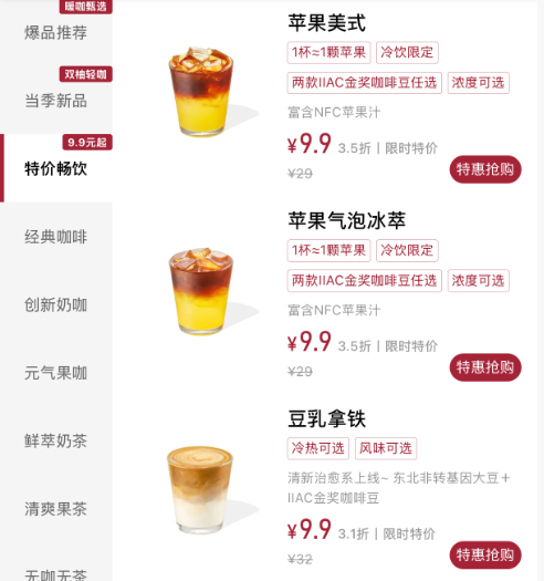 注意看清楚,不是 9.9 一杯,是 9.9 一个月,一万+门店畅喝。